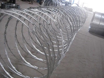 刀片滾籠由熱鍍鋅鋼板或不銹鋼薄板沖壓出尖銳的刀片狀,高張力鍍鋅鋼絲或不銹鋼絲做芯線組合而成的阻絕器材。由于刺網(wǎng)造形獨特不易觸摸,因而能好的隔離防護(hù)效果。產(chǎn)品的主要材質(zhì)有鍍鋅板和不銹鋼板。
